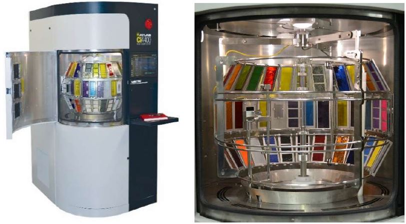 Every new product development starts with xenon-arc weathering testing to select the right materials for the individual components – no matter if it is a new car, plane, or new quadrocopter. The weathering of exterior parts often involves using xenon-arc rotating rack devices such as Atlas Ci Weather-Ometers. It serves to determine which protective coating formulation best withstands sunlight-UV, heat, and moisture to the manufacturer’s standards (e.g. ASTM D7869, SAE J2527). The same applies for all interior parts exposed to sunlight, as well (e.g. ISO 105-B06, SAE J2412).