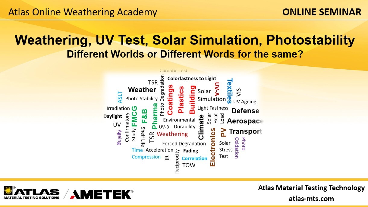 Weathering Test Methods and Basic Standards – Atlas Online Seminar