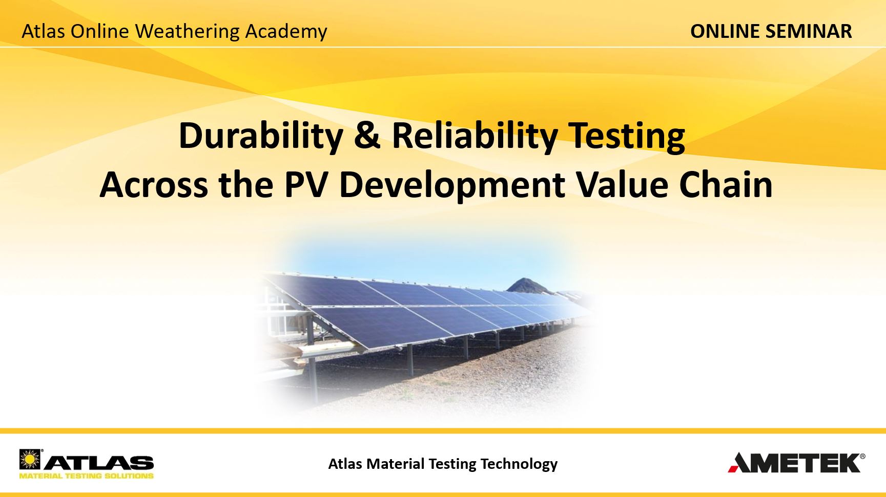 Durability & Reliability Testing Across the PV Development Value Chain - Atlas Online Seminar
