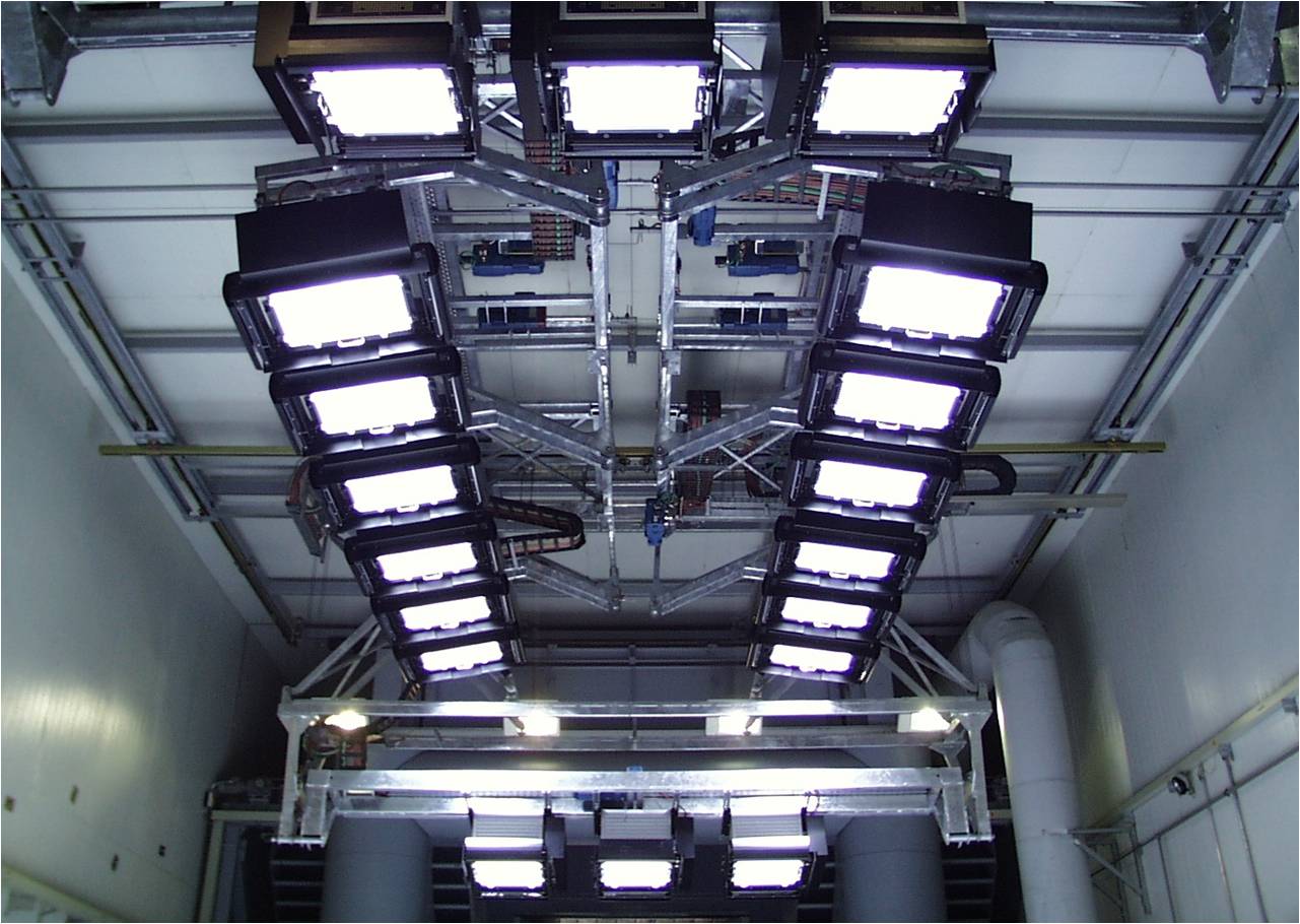 SolarConstant 4000/2500 are typically used inside solar environmental walk-in and drive-in chambers for automotive applications, solar stress chambers for electronics, and for solar simulators for PV module testing.